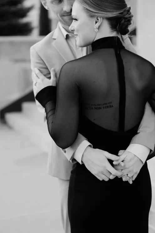 When Zoé flew back to Nebraska before relocating to California, Jake booked a flight and showed up for the weekend. By his own account, it was a dozen first dates packed into two days. Four months of long distance between San Diego and Cincinnati followed before Jake asked her father for permission at Christmastime and proposed the following June.