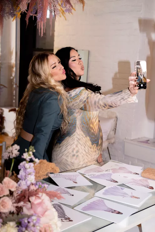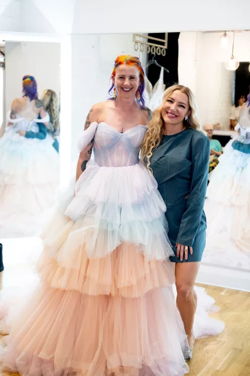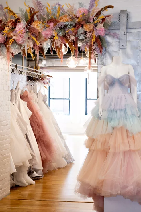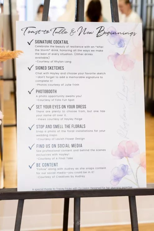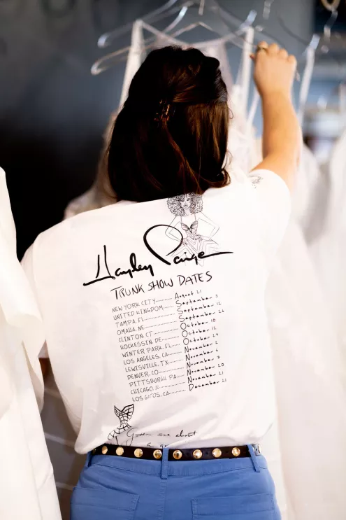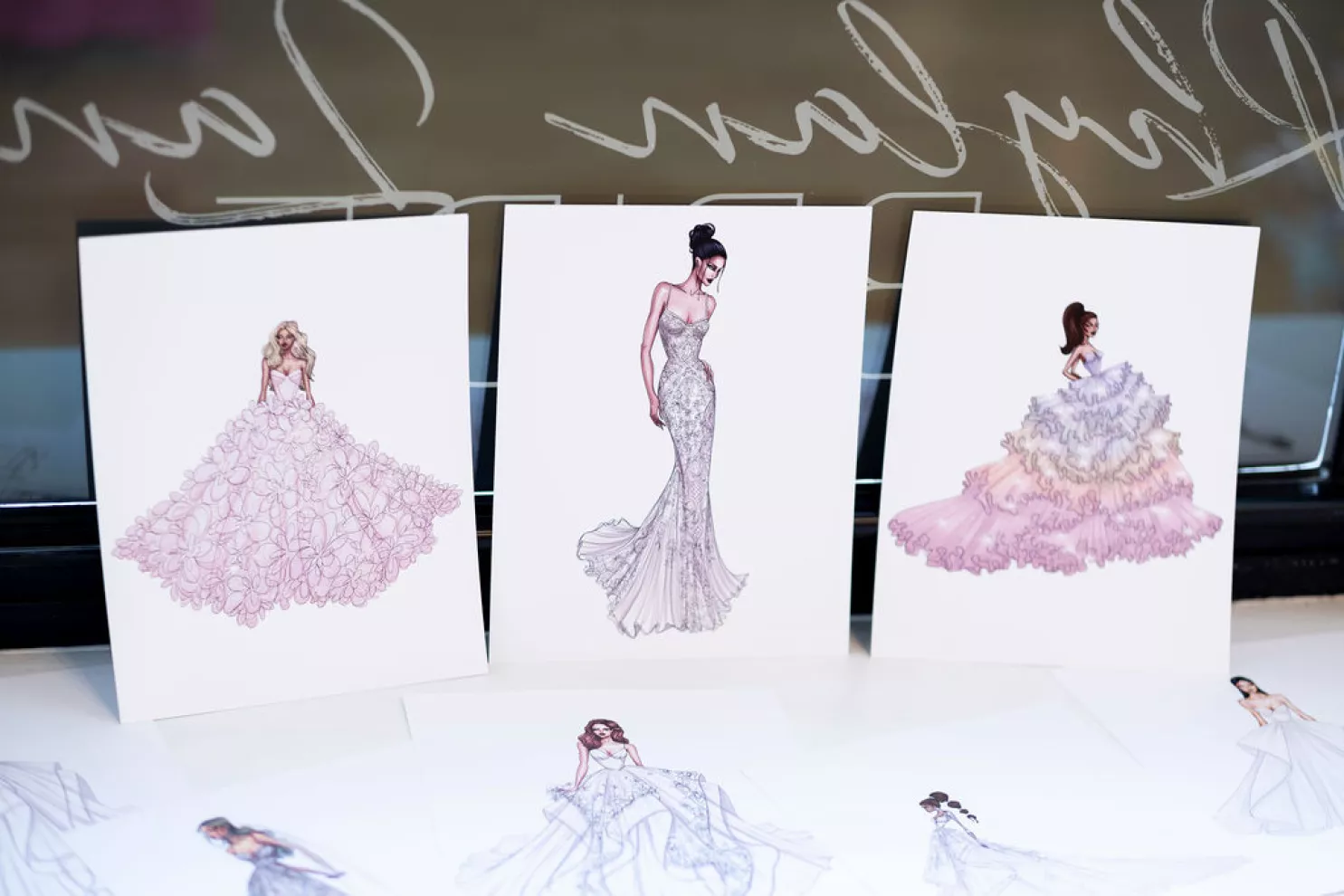 Brides and bridal fashion insiders gathered in Omaha, Nebraska, for a truly unforgettable evening as Hayley Paige unveiled her highly anticipated comeback collection, Twice Upon a Time, at a trunk show hosted by Rhylan Lang Bridal Studio. The event, aptly titled Toast to Tulle & New Beginnings, transformed the boutique into a celebration of Paige's resilience and creative eye for design, with whimsical floral installations, racks of couture wedding dresses, hand-sketched gown illustrations and an interactive lineup of experiences — including a signature cocktail, photo booth and custom sketches signed by Paige herself. Guests mingled among breathtaking gowns (some white, some ivory and some a waterfall of color), sipping champagne while meeting the designer — who stunned in a chic teal set — as she personally introduced her first bridal collection in five years. The night was a show-stopping showcase of the designer's enduring artistry, perfectly representing Paige's bold reintroduction to the bridal fashion world.