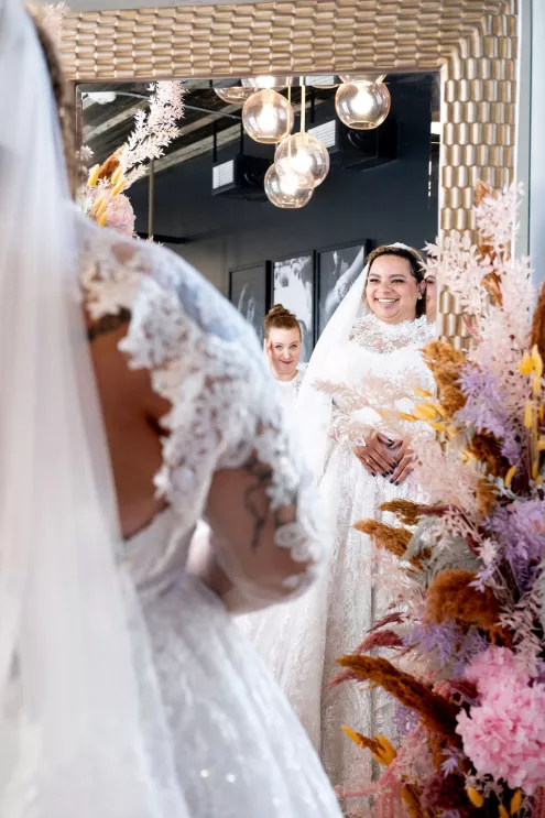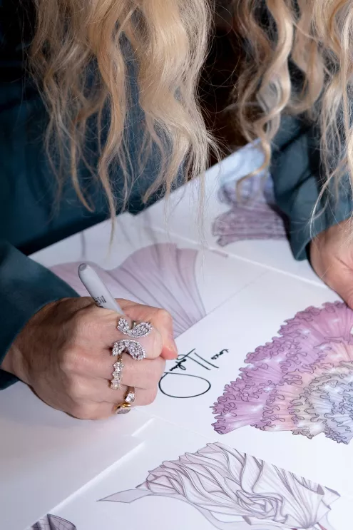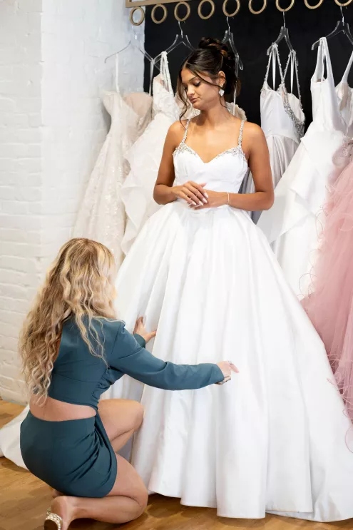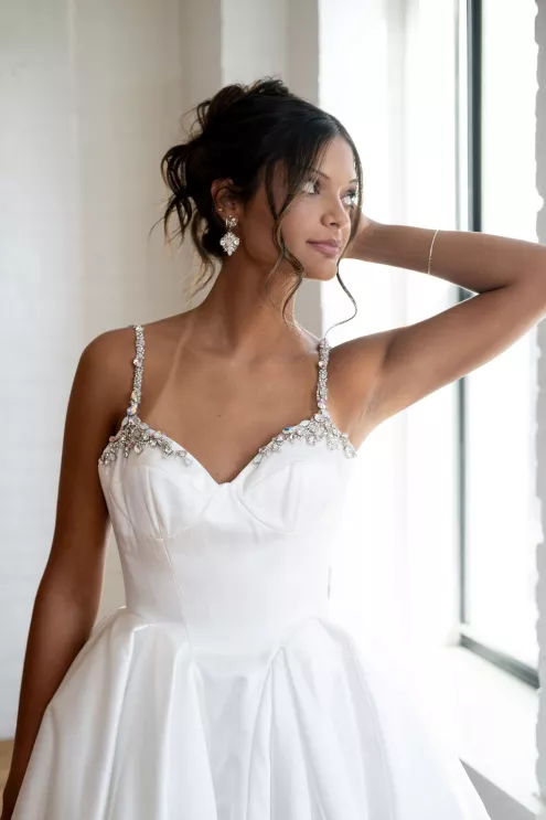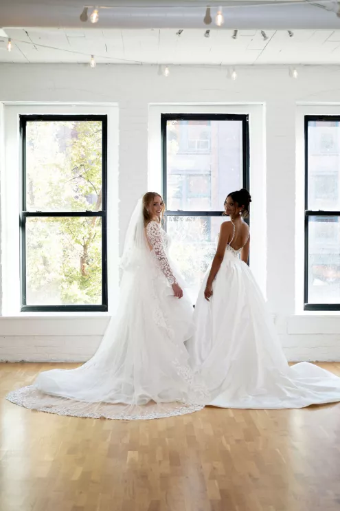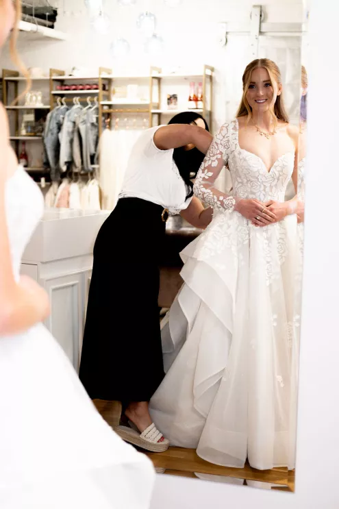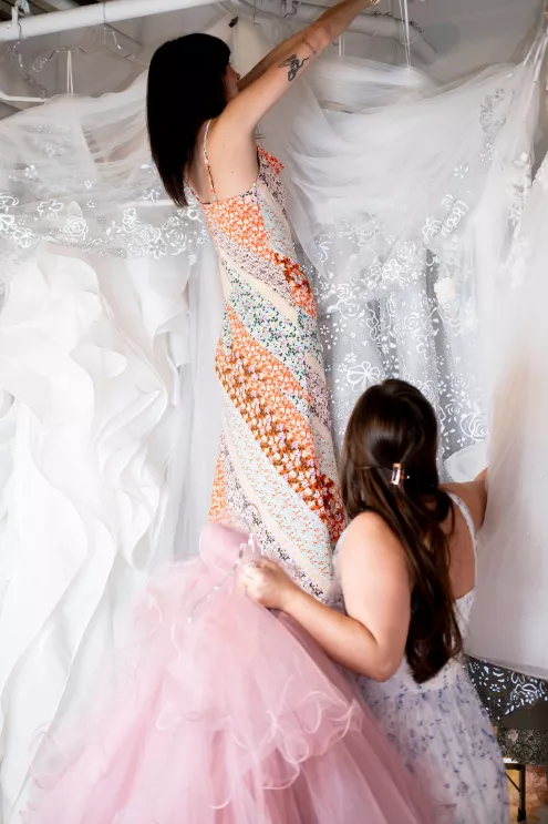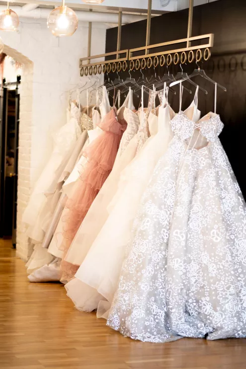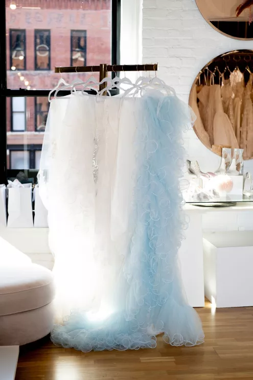 Brides and bridal fashion insiders gathered in Omaha, Nebraska, for a truly unforgettable evening as Hayley Paige unveiled her highly anticipated comeback collection, Twice Upon a Time, at a trunk show hosted by Rhylan Lang Bridal Studio. The event, aptly titled Toast to Tulle & New Beginnings, transformed the boutique into a celebration of Paige's resilience and creative eye for design, with whimsical floral installations, racks of couture wedding dresses, hand-sketched gown illustrations and an interactive lineup of experiences — including a signature cocktail, photo booth and custom sketches signed by Paige herself. Guests mingled among breathtaking gowns (some white, some ivory and some a waterfall of color), sipping champagne while meeting the designer — who stunned in a chic teal set — as she personally introduced her first bridal collection in five years. The night was a show-stopping showcase of the designer's enduring artistry, perfectly representing Paige's bold reintroduction to the bridal fashion world.