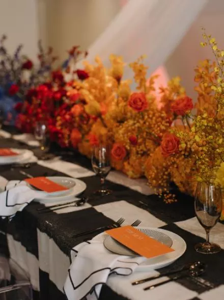 Playful Wedding Day Featuring Bold Pink Hues and Modern Décor at The Garden Theatre