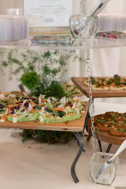 Guests enjoyed elevated bites from Catering Creations, presented through stunning food displays that included a hanging installation and garden-inspired pots, followed by sweet treats from Butterfly Bakery. Omaha Party Club kept the energy flowing with music, while Party Bar Omaha added LED letters and balloons for playful visual impact. A photo booth by Complete Weddings + Events captured candid moments throughout the evening.