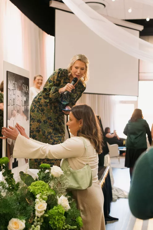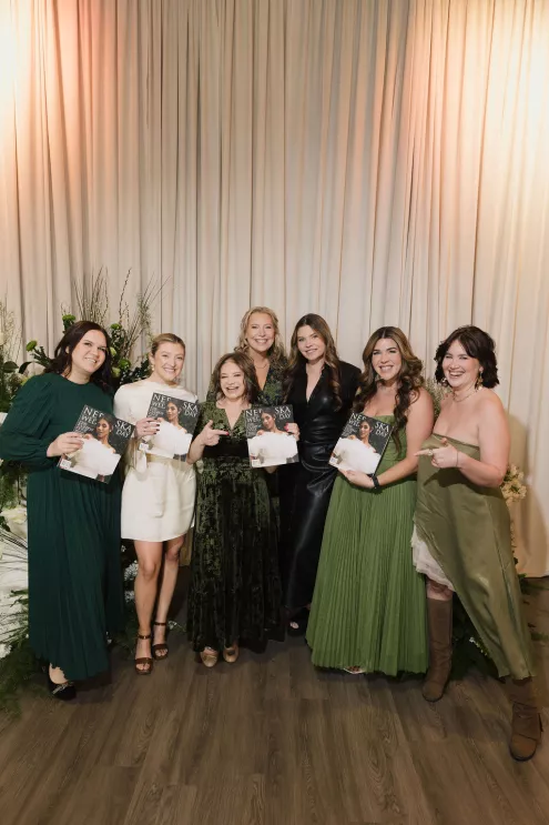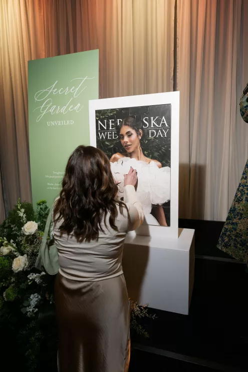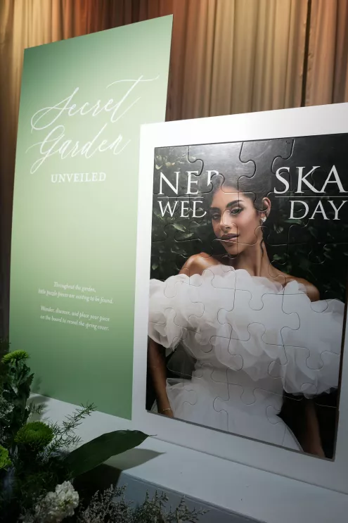 Senior Publisher Brooke Beise welcomed guests before introducing Carrie Fisher, the new Publisher of Nebraska Wedding Day. During the presentation, puzzle pieces crafted by Dorée Events were assembled to reveal the Spring/Summer 2026 cover, creating a memorable and interactive moment for attendees. Pin & Pose and Addi Malena Esthetics, who provided hair and makeup for the Nebraska Wedding Day team, ensured a polished look for the occasion.